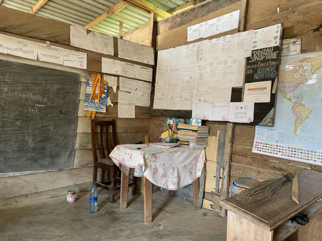 招港國際公司喀麥隆石場項(xiàng)目地處偏遠(yuǎn)山區(qū),林多地少,環(huán)境惡劣,條件艱苦。Eboundja小學(xué)位于項(xiàng)目部駐地附近,學(xué)校由村民自建,校舍用木板搭建,校內(nèi)只有一名校長和一位老師,學(xué)校的日常開支大多也由周邊村民自發(fā)捐助。