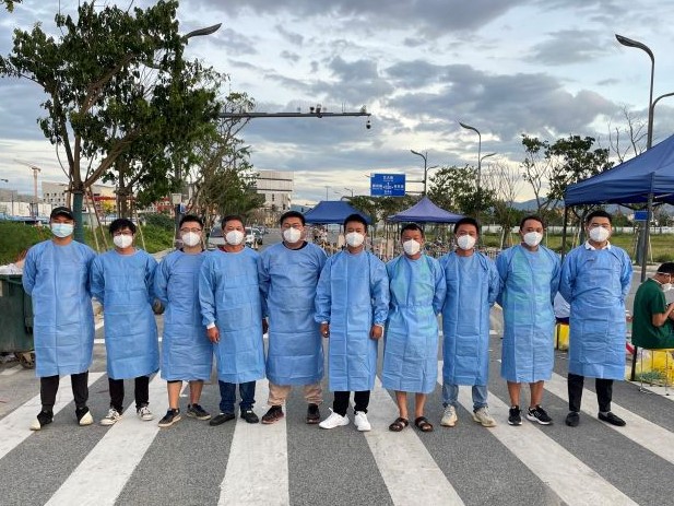8月5日凌晨,港灣工程公司海南分公司接到崖州區(qū)疫情防控指揮部發(fā)出的緊急協(xié)助支援通告后,在做好企業(yè)自身防疫安全措施的前提下,港灣工程公司總經(jīng)理助理、海南分公司總經(jīng)理祝錦根牽頭迅速動(dòng)員市政港航事業(yè)部和基礎(chǔ)事業(yè)部當(dāng)?shù)仨?xiàng)目管理人員,火速成立了由26名員工組成的兩支防疫志愿者小分隊(duì),積極參與到崖州灣科技城內(nèi)兩個(gè)核酸采樣點(diǎn)的志愿者服務(wù)中,助力抗“疫”一線。