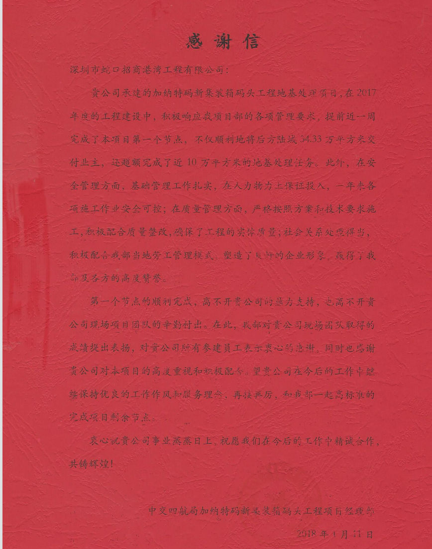 歷時(shí)近兩年半的施工過(guò)程中,項(xiàng)目部秉承“嚴(yán)于要求、精于技術(shù)、善于建設(shè)、服務(wù)甲方”的管理理念,嚴(yán)格按照技術(shù)標(biāo)準(zhǔn)、設(shè)計(jì)工期要求進(jìn)行施工作業(yè),主動(dòng)做好與總包單位及相關(guān)合作單位溝通與協(xié)作,保安全、保質(zhì)量、保進(jìn)度,最終順利完成了建設(shè)任務(wù)。項(xiàng)目團(tuán)隊(duì)積極配合各項(xiàng)管理要求,同時(shí)改進(jìn)施工工藝,多次超前完成節(jié)點(diǎn)工期目標(biāo),為項(xiàng)目整體工程質(zhì)量的提升和甲方要求節(jié)點(diǎn)的提前交付做出了巨大貢獻(xiàn),也為該工程榮獲“國(guó)家優(yōu)質(zhì)工程獎(jiǎng)”奠定了堅(jiān)實(shí)基礎(chǔ),因此先后收到了甲方的多封感謝信,獲得了“特別貢獻(xiàn)獎(jiǎng)”“優(yōu)秀合作隊(duì)伍”等多項(xiàng)榮譽(yù),這是對(duì)港灣工程公司在該項(xiàng)目中所付出的努力予以充分肯定。