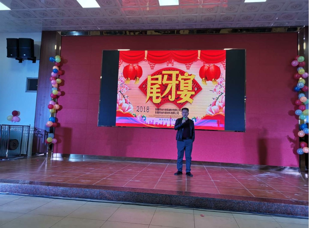 當天晚上18時晚會正式拉開帷幕,港創(chuàng)建材公司總經理孫文、創(chuàng)杰建材公司總經理劉偉分別作了重要講話。孫總對東莞創(chuàng)杰公司2018年所取得成績表示了肯定,用六個字“客戶、成本、現(xiàn)金”對公司寄予厚望,并為公司2019年的發(fā)展指引了方向。