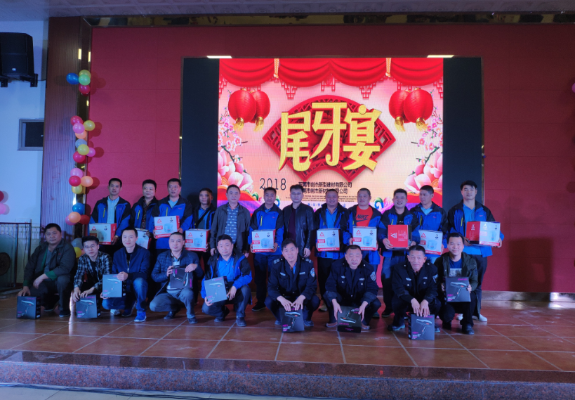 公司穩(wěn)健發(fā)展離不開全體員工的共同努力,晚會表彰了創(chuàng)杰建材公司和創(chuàng)杰新材料公司共15名優(yōu)秀員工,授予他們“2018年度優(yōu)度員工”榮譽稱號。晚會還為1月24日拔河比賽的冠軍隊和亞軍隊頒發(fā)了獎品。
