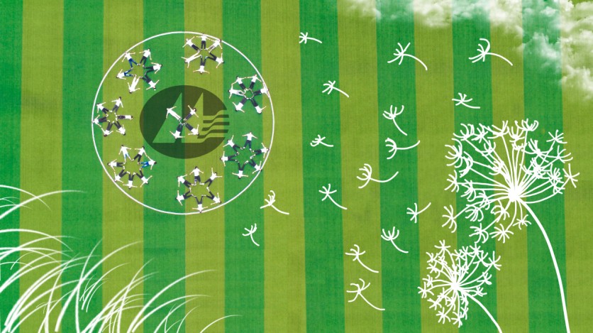 大圓形里面組成獨(dú)立的小圓形,象征著大家團(tuán)結(jié)協(xié)作、互幫互助的精神;蒲公英象征堅(jiān)持、自信和勇敢。