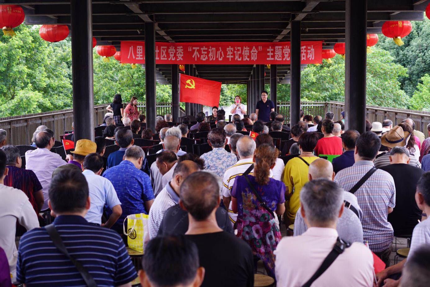 為紀(jì)念中國(guó)共產(chǎn)黨成立98周年,6月28日,成都市成華區(qū)府青路街道八里莊社區(qū)黨委在蒲江縣西來(lái)古鎮(zhèn)舉行“不忘初心,牢記使命”主題黨日活動(dòng)?;顒?dòng)邀請(qǐng)了社區(qū)各黨支部及轄區(qū)內(nèi)各企業(yè)黨支部170余人參加,四川招港建設(shè)有限公司黨支部書(shū)記饒瑤帶領(lǐng)公司黨員代表及入黨積極分子共8人到場(chǎng)參加活動(dòng)。