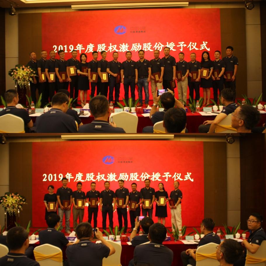 徐總匯報2018年度股權激勵實施暨2019年度股份授予情況說明后,舉行了2019年度股權激勵股份授予儀式;還宣講了以集團成立十周年為契機提出的《“十年功勛獎”管理辦法(討論稿)》。