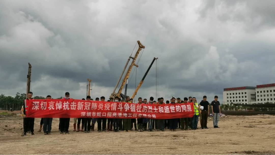 當(dāng)天,港灣工程公司博鰲樂城樁基項(xiàng)目部全體員工整齊列隊(duì),肅穆垂首,向抗擊新冠肺炎疫情斗爭(zhēng)犧牲烈士和逝世同胞致以深切哀悼;祈禱疫情早日結(jié)束,人間皆安,告慰烈士和逝去的同胞,舉國(guó)同悲,舉國(guó)同心,舉國(guó)同進(jìn),愿逝者安息,愿生者奮發(fā),愿祖國(guó)繁榮昌盛。