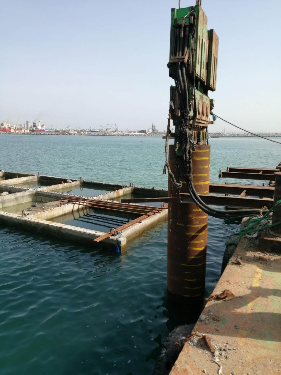 該分項(xiàng)施工任務(wù)包含了6根直徑3.4米、長(zhǎng)度24米的護(hù)筒樁制作安裝,海上60根平臺(tái)樁及平臺(tái)施工,單根重達(dá)120噸的FRU樁安裝,鋼筋籠安裝以及水下34米澆筑樁芯混凝土等系列工作。該項(xiàng)目位置臨大西洋幾內(nèi)亞灣,受季節(jié)性季風(fēng)氣候影響,海浪大且頻繁,安全風(fēng)險(xiǎn)高、作業(yè)施工難度大。目前項(xiàng)目部員工均是原地基處理員工,除了要求他們學(xué)習(xí)跨工種的施工技術(shù)外,項(xiàng)目部也在加強(qiáng)員工在技術(shù)、安全、思想方面等工作。