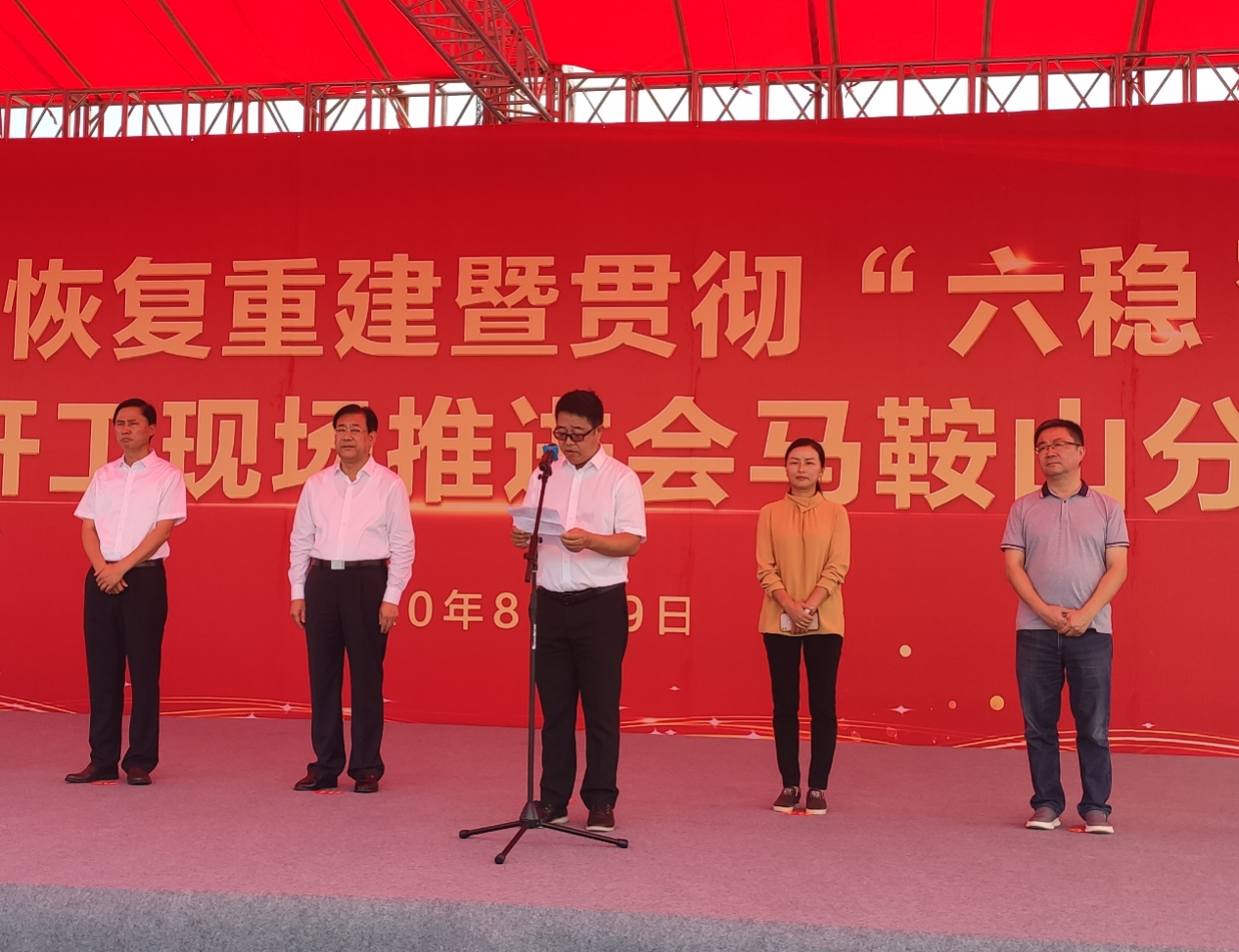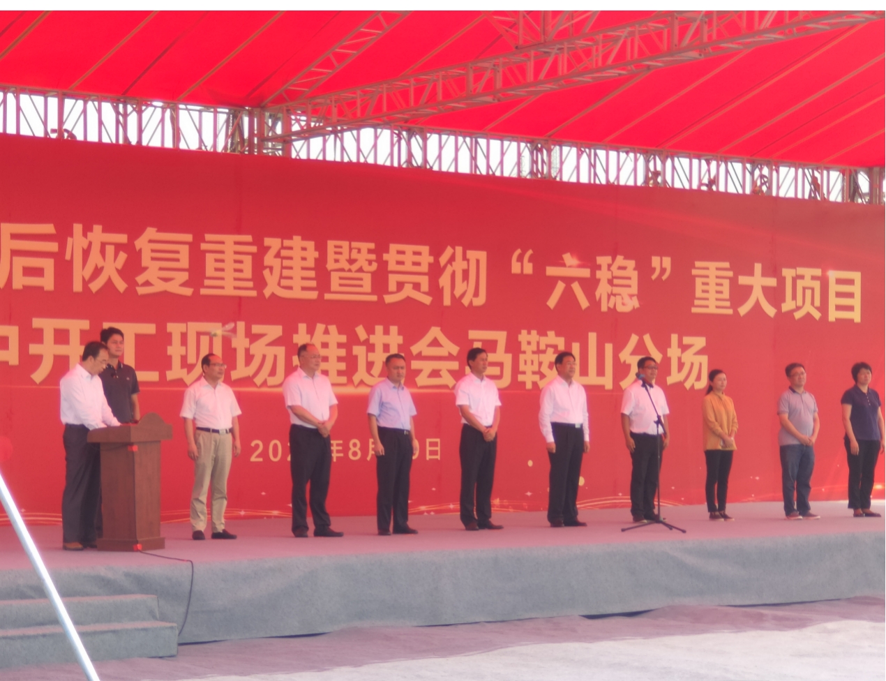 8月29日,安徽省推進(jìn)災(zāi)后恢復(fù)重建暨貫徹“六穩(wěn)”重大項(xiàng)目集中開工現(xiàn)場推進(jìn)會(huì)馬鞍山分場在雨山區(qū)的港創(chuàng)智能建材科技有限公司裝配式建筑產(chǎn)業(yè)園項(xiàng)目現(xiàn)場舉行。馬鞍山市市長袁方出席并宣布開工令,副市長鄭琇煦主持集中開工儀式,馬鞍山市直機(jī)關(guān)、各區(qū)縣主要負(fù)責(zé)人、深圳港創(chuàng)建材股份有限公司總經(jīng)理孫文以及馬鞍山市港創(chuàng)智能建材科技有限公司全體員工參加啟動(dòng)儀式。