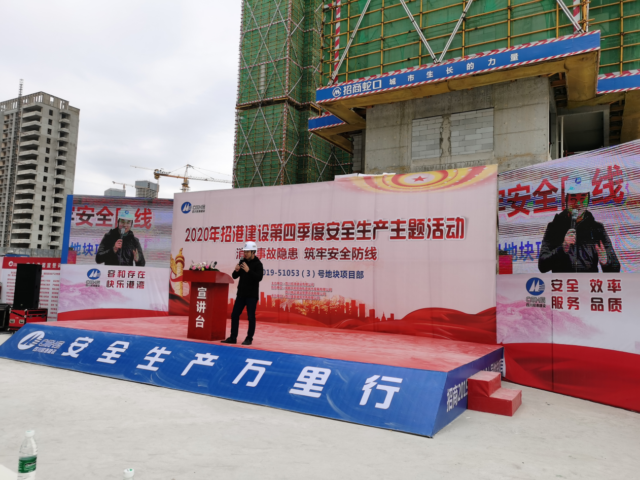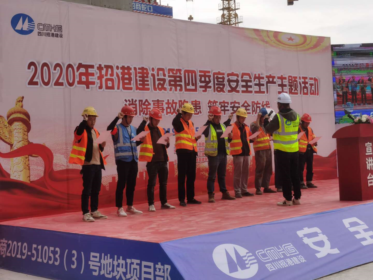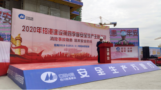為強(qiáng)化安全發(fā)展理念,提高全員安全素質(zhì),從源頭杜絕安全風(fēng)險(xiǎn),10月28日,四川招港建設(shè)有限公司天府新區(qū)56號(hào)地塊項(xiàng)目部舉行第四季度安全生產(chǎn)主題活動(dòng)。建設(shè)單位成都天府招商軌道城市發(fā)展有限公司、監(jiān)理單位四川精正建設(shè)管理咨詢有限公司有關(guān)領(lǐng)導(dǎo)、招港建設(shè)公司總工程師龐濤及項(xiàng)目部領(lǐng)導(dǎo)班子、各勞務(wù)班組全員參加。
